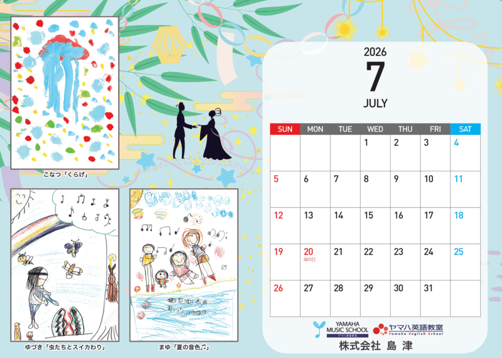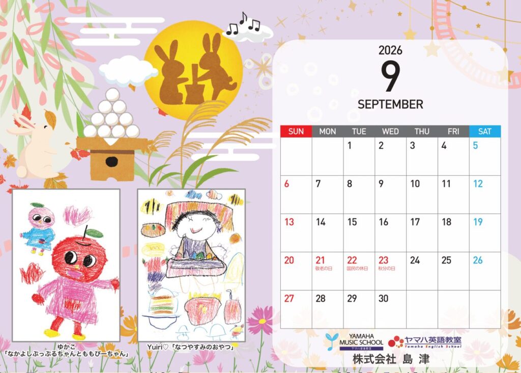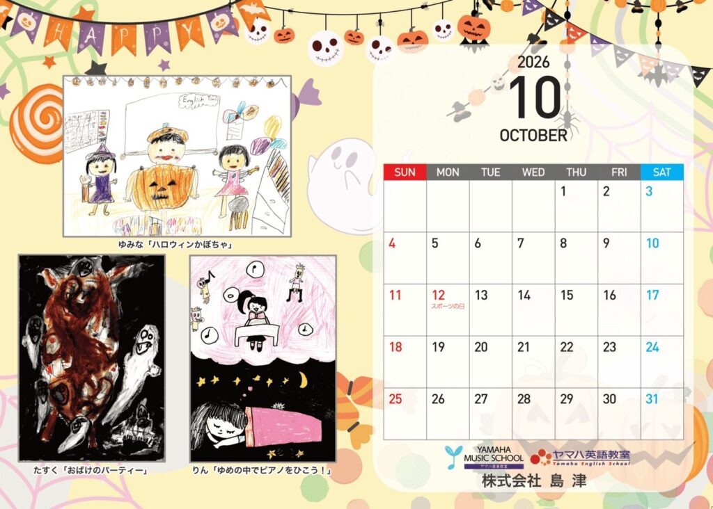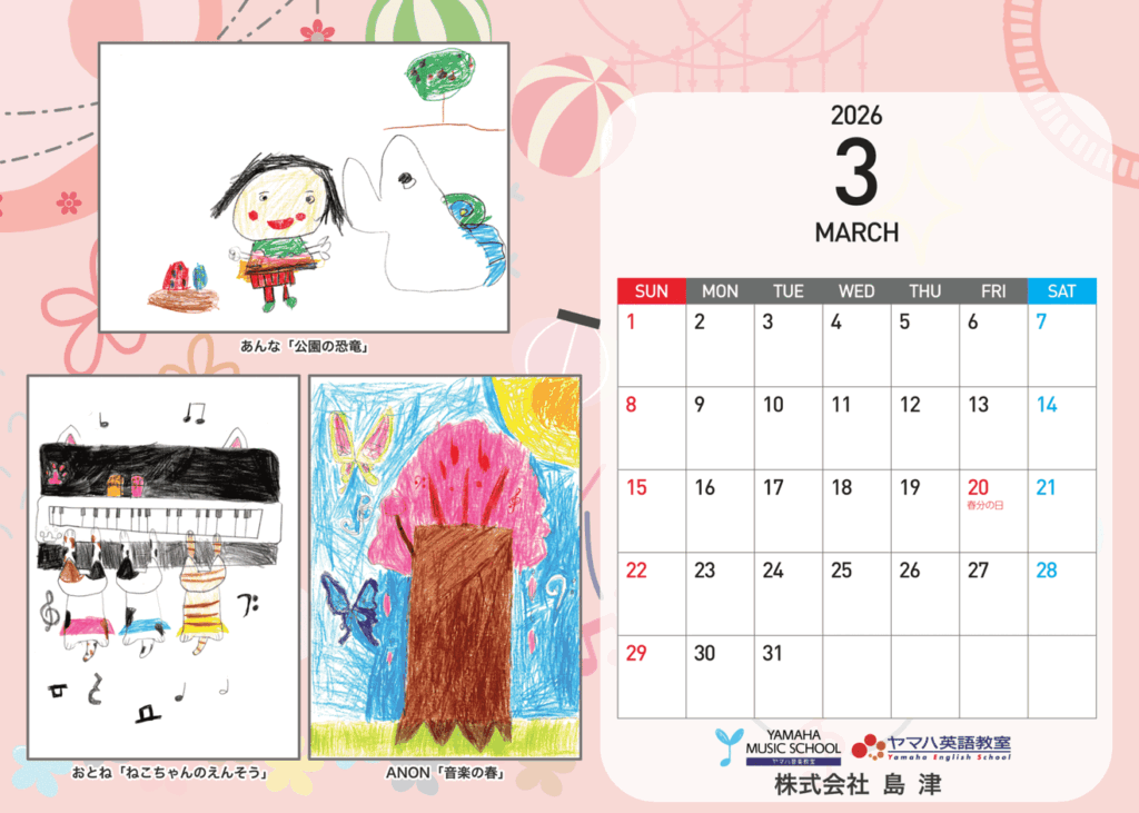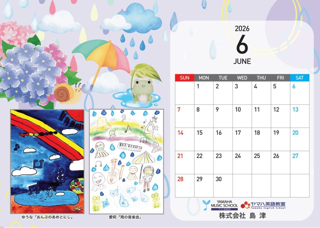 2026年版「島津楽器オリジナルカレンダー」が完成しました。絵をかいてくださった生徒の皆さん、素敵な絵をありがとうございまた。カレンダーはレッスン時に担当講師よりお受け取りください。次回も素敵な絵の応募お待ちしております♪