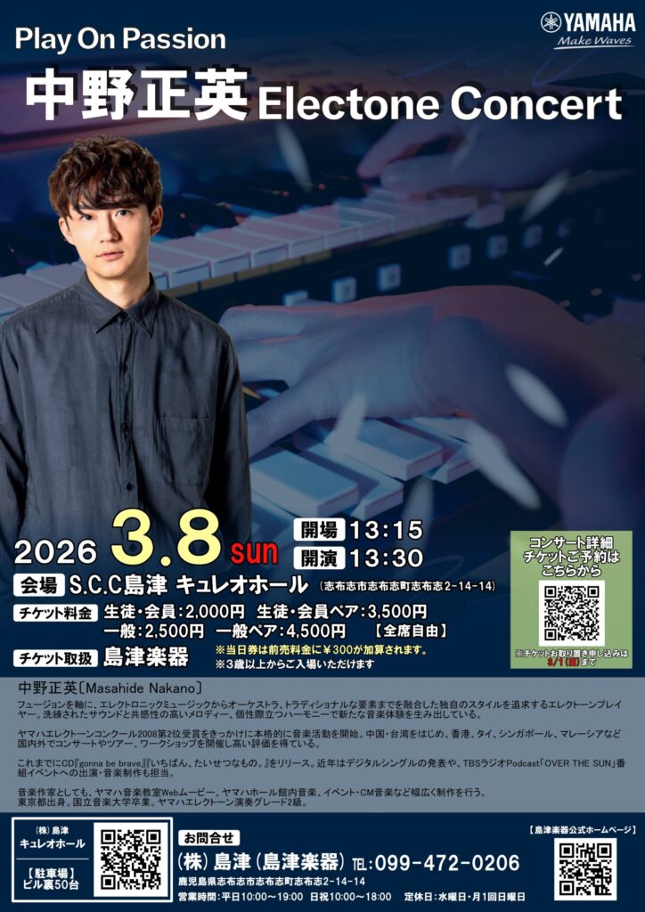 3/8(日)中野正英 エレクトーンコンサート後に、12年ぶりにフルモデルチェンジを遂げるエレクトーン新商品「ELS-03シリーズ」の講師向け活用講座を開催いたします。本講座では、新商品の特長やコンセプト、表現の可能性について、演奏を交えながらご紹介いたします。新機能や進化ポイントを実際に体感・習得いただける内容となっております。皆様のご参加を心よりお待ちしております。