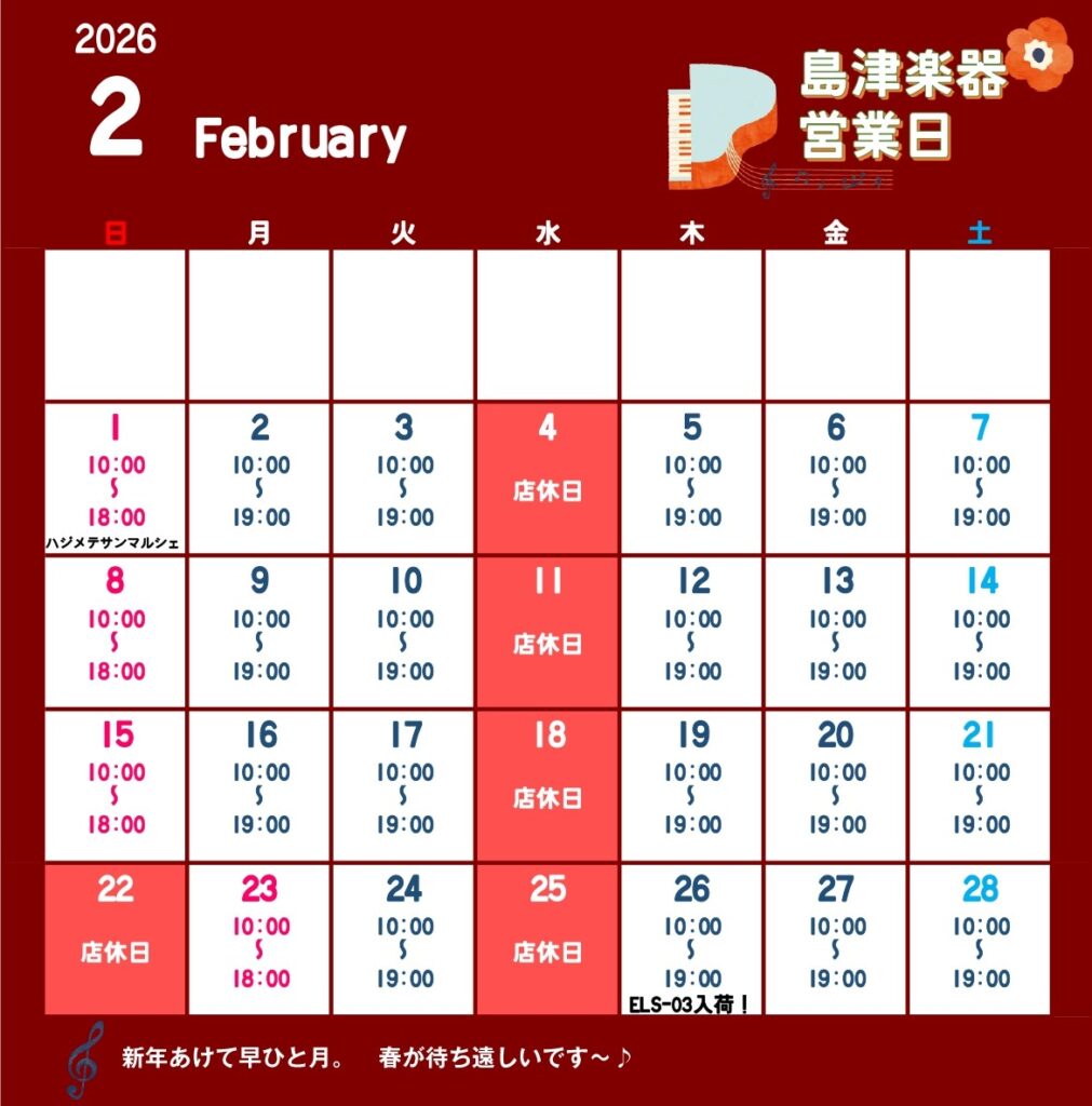 2月の営業日(島津楽器)